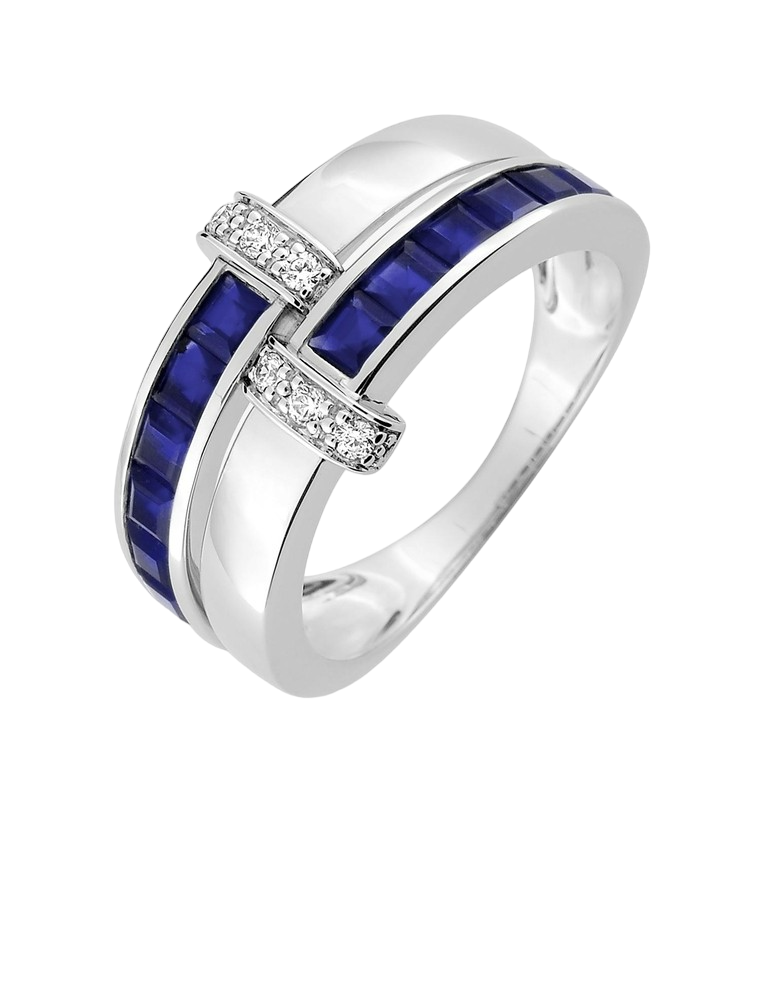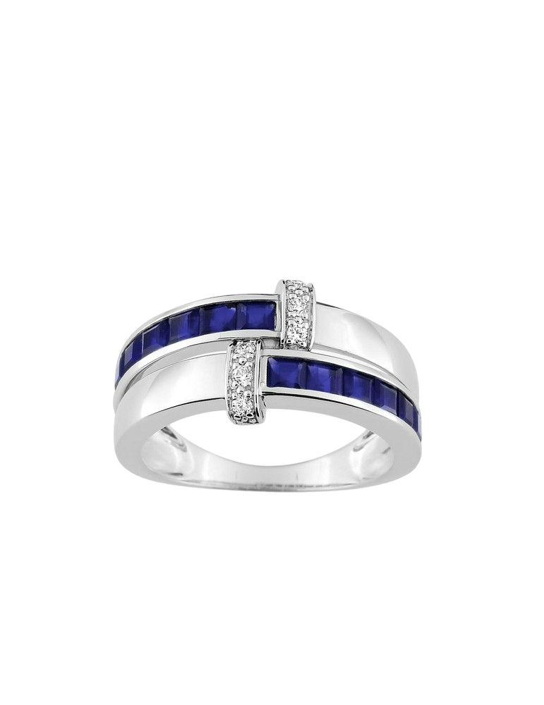 Craquez pour cette magnifique bague saphir en or blanc 750‰ composée de deux anneaux pavés de 12 saphirs carrés sertis rails.