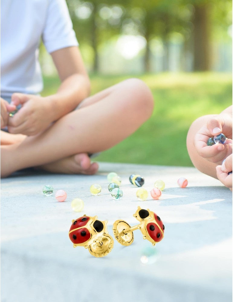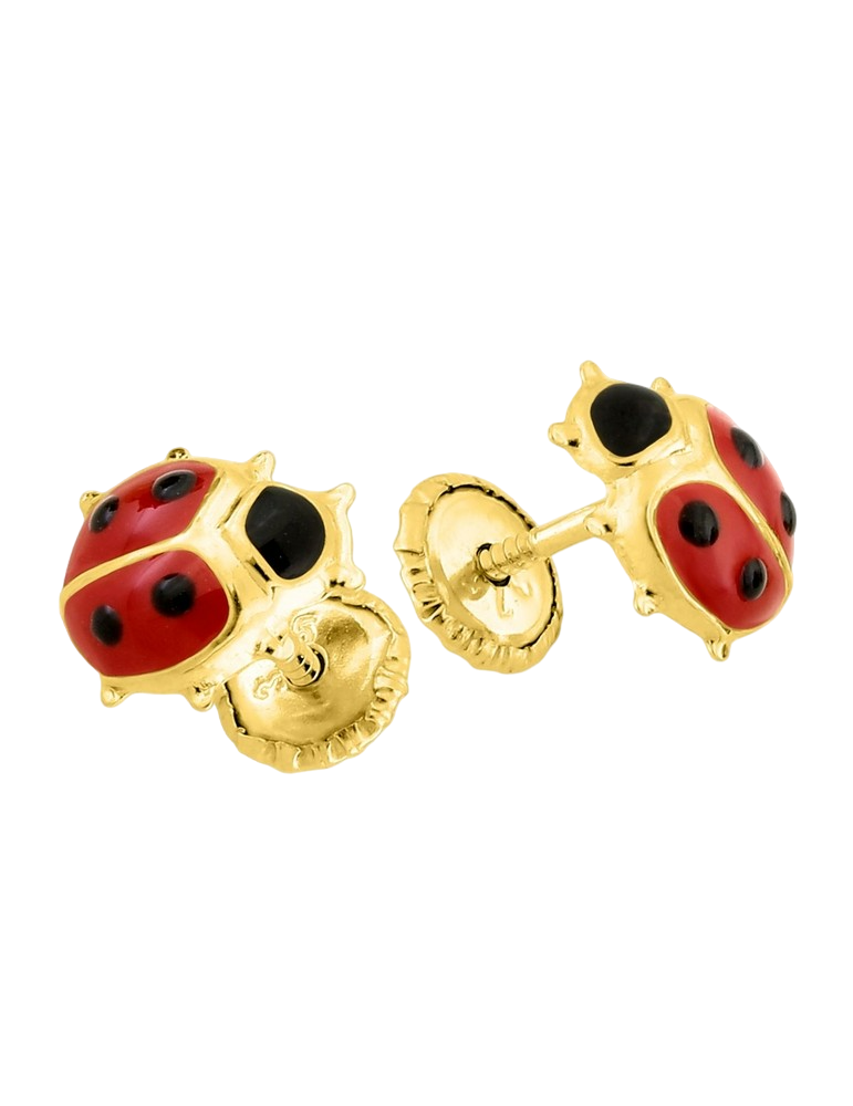 Boucles d'Oreilles à Vis Coccinelle - Or Jaune 750‰