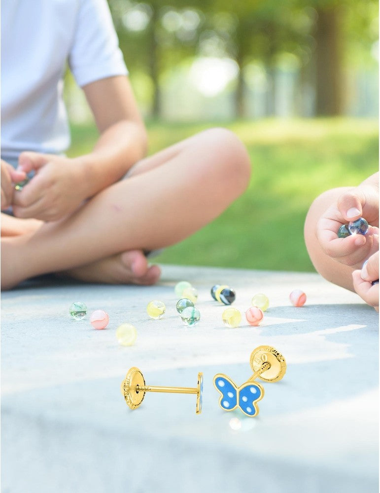 Boucles d'Oreilles Papillon Bleu - Plaqué Or