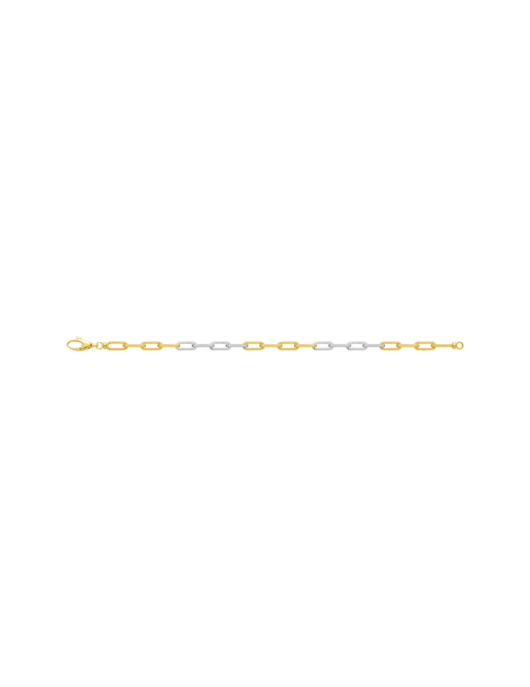 Ce magnifique bijou, confectionné en or jaune et blanc 750‰ (18 carats), est une valeur sûre grâce à son allure intemporelle. Sa superbe maille rectangle épousera votre poignet avec élégance et vous accompagnera au fil des ans, s'adaptant à toutes les occasions.