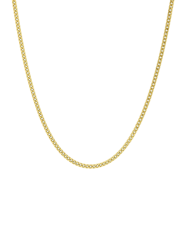 Cette chaîne en maille gourmette diamantée pour adulte et enfant en or jaune 750‰ (18 carats) au style simple et intemporel peut être porté par un homme ou une femme, seul ou avec un pendentif.