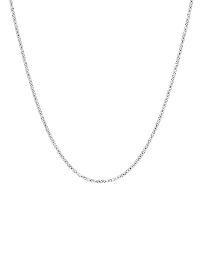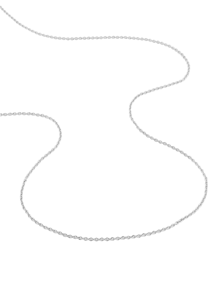 Cette chaîne en maille forçat ronde pour adulte et enfant en or blanc 750‰ (18 carats) est réputée pour son esthétisme, sa solidité et sa capacité à refléter la lumière.