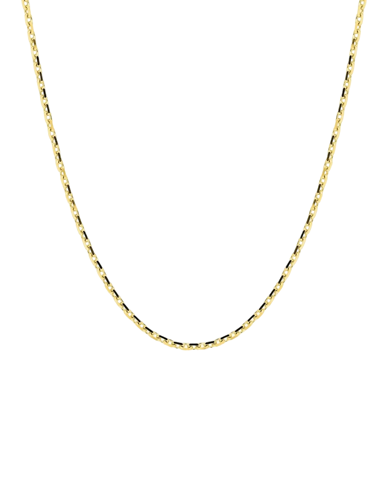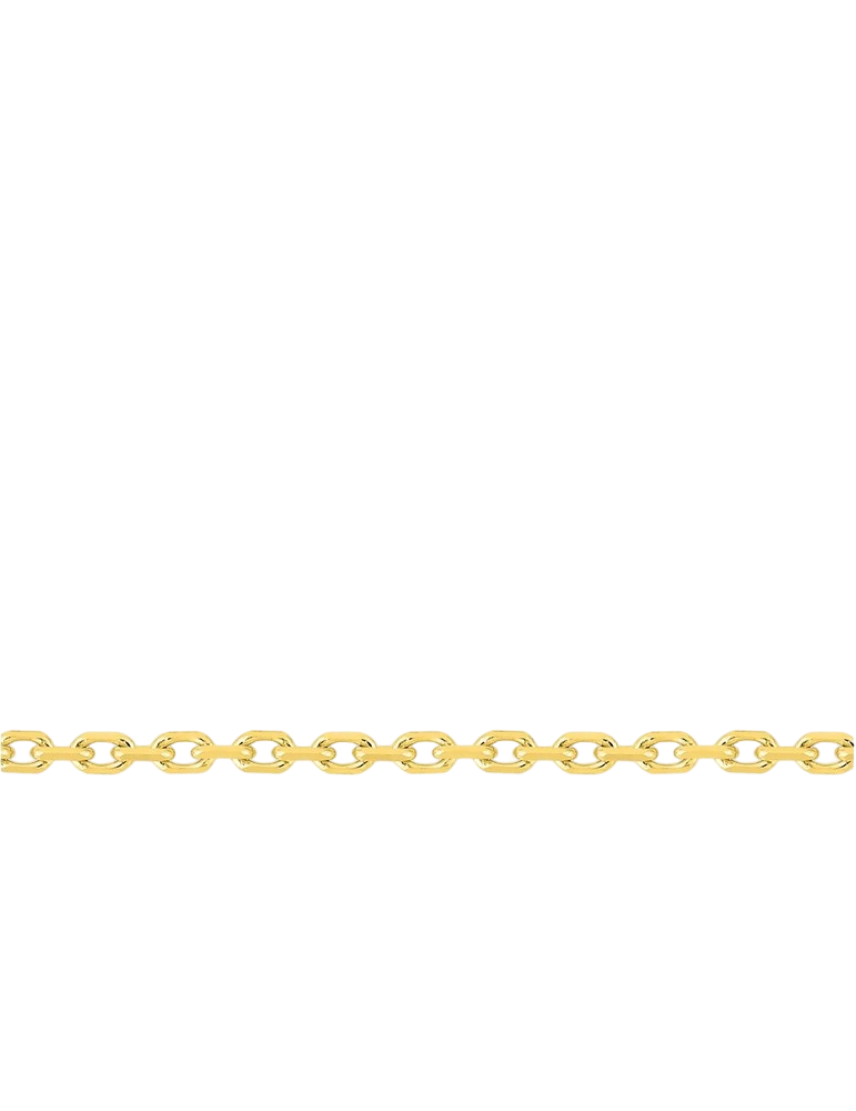 Cette chaîne en maille forçat diamantée pour adulte et enfant en or jaune 750‰ (18 carats) est réputée pour son esthétisme, sa solidité et sa capacité à refléter la lumière. En effet, sa brillance est liée à ses maillons facettés, qui ont été limés ou diamantés pour un rendu plus rectangulaire.