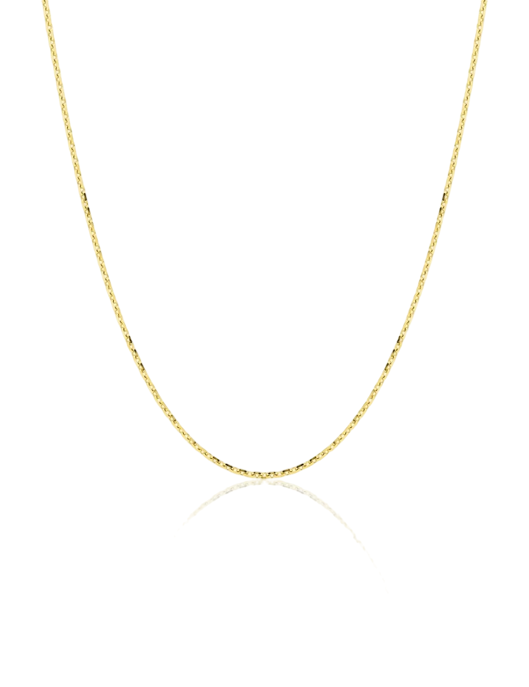 Cette chaîne en maille forçat diamantée pour adulte et enfant en or jaune 750‰ (18 carats) est réputée pour son esthétisme, sa solidité et sa capacité à refléter la lumière. En effet, sa brillance est liée à ses maillons facettés, qui ont été limés ou diamantés pour un rendu plus rectangulaire.