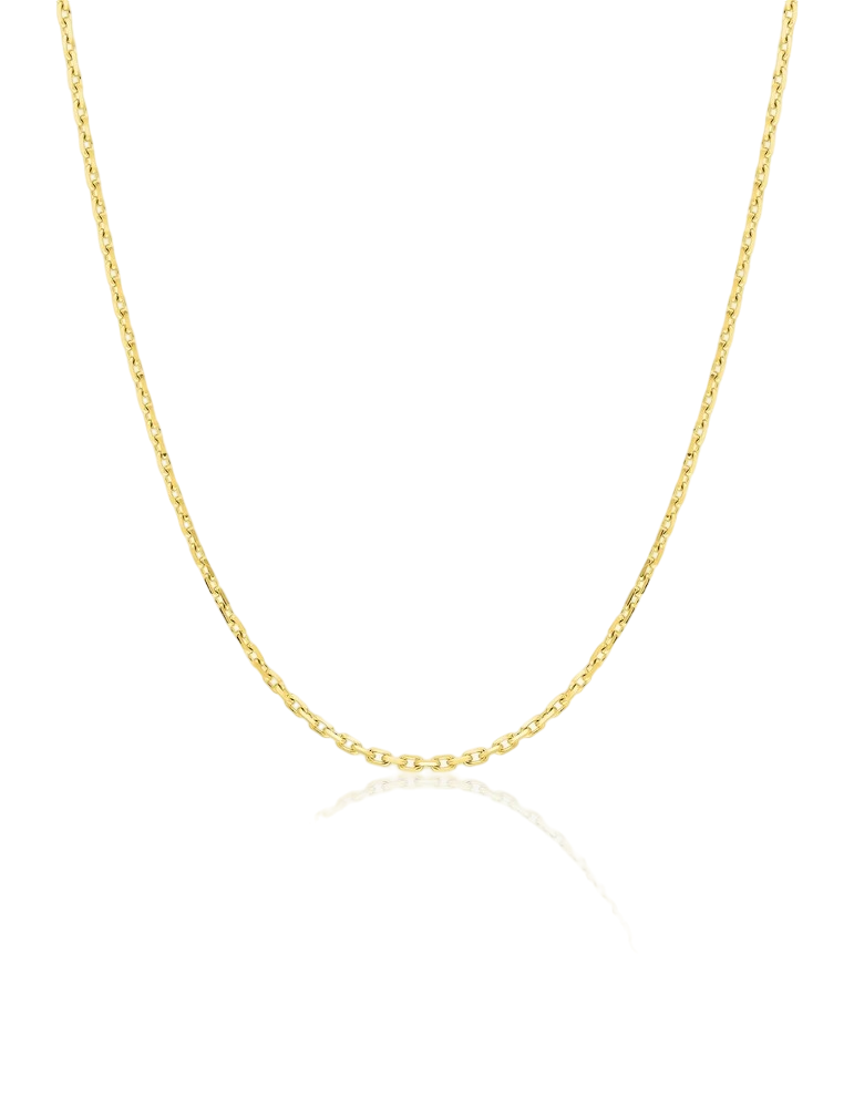 Cette chaîne en maille forçat diamantée pour adulte et enfant en or jaune 750‰ (18 carats) est réputée pour son esthétisme, sa solidité et sa capacité à refléter la lumière. En effet, sa brillance est liée à ses maillons facettés, qui ont été limés ou diamantés pour un rendu plus rectangulaire.