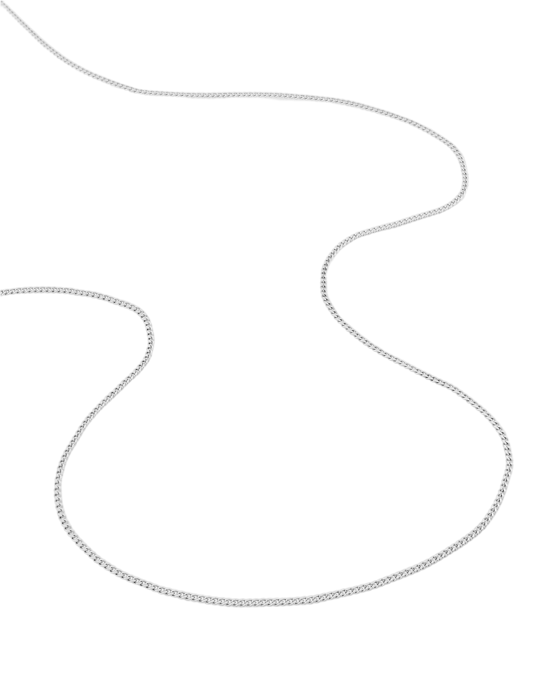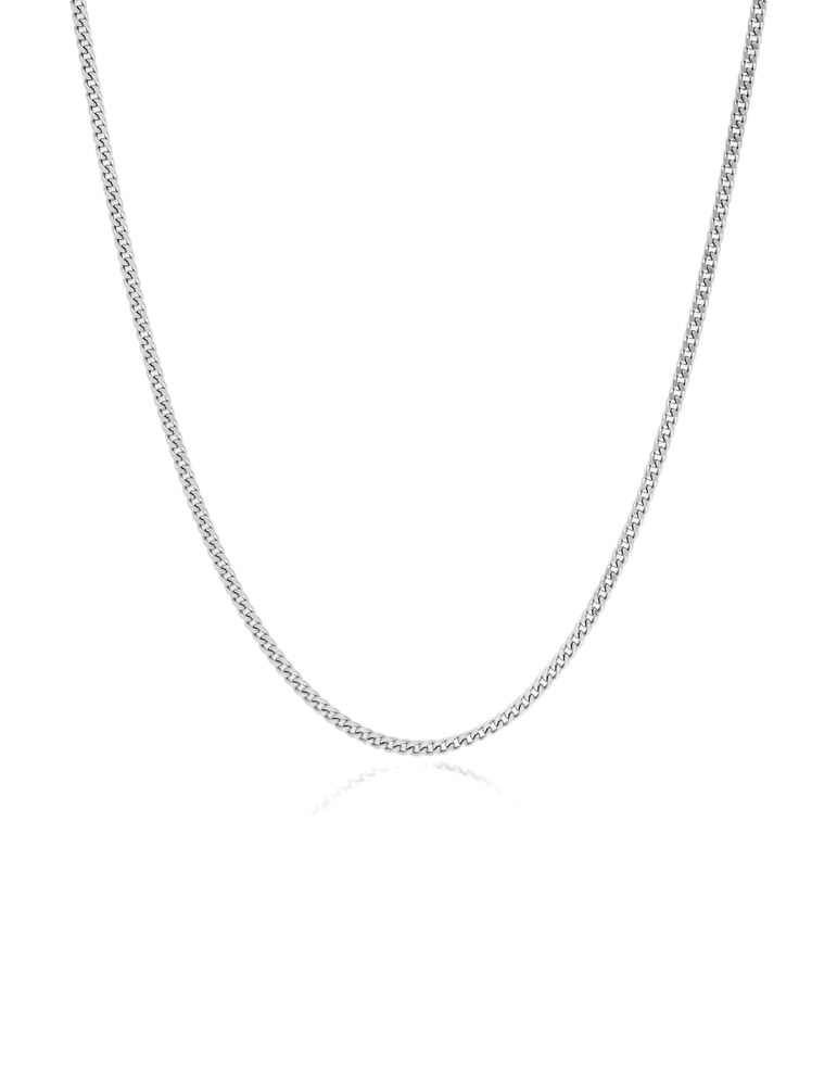 Cette chaîne en maille gourmette diamantée pour adulte et enfant en or blanc 750‰ (18 carats) au style simple et intemporel peut être porté par un homme ou une femme, seul ou avec un pendentif.