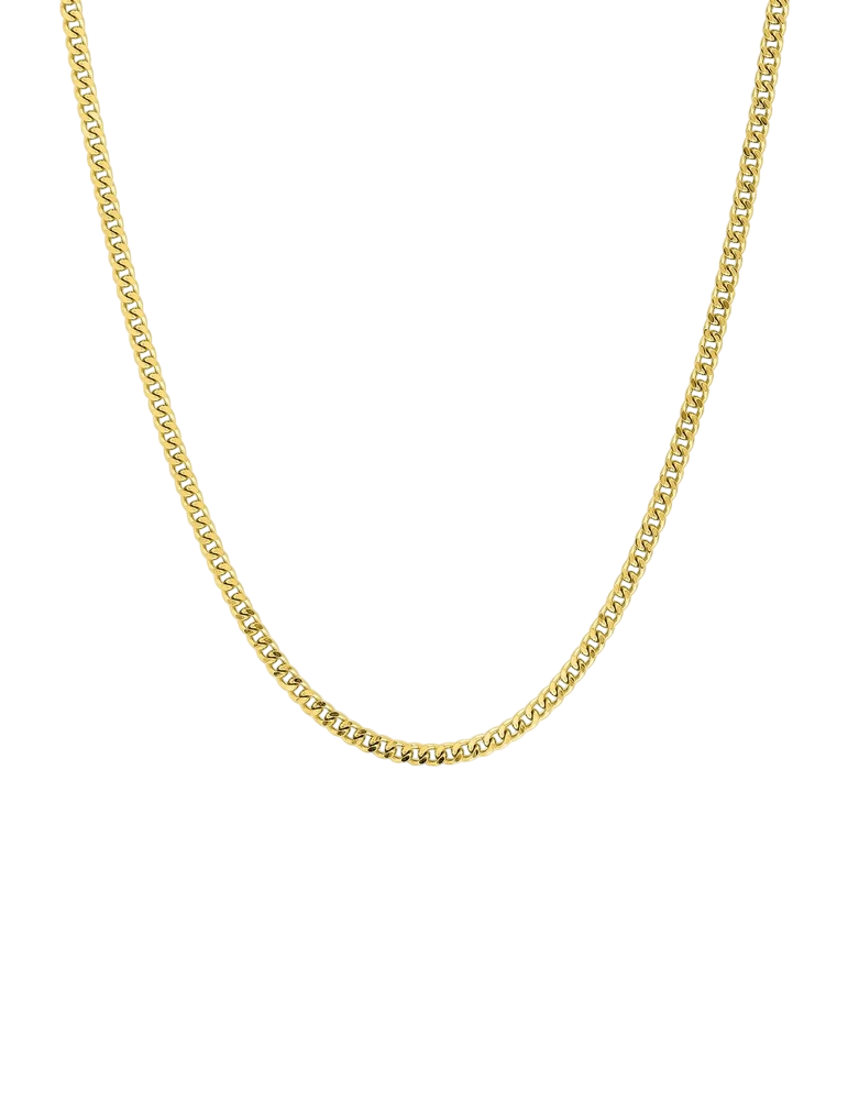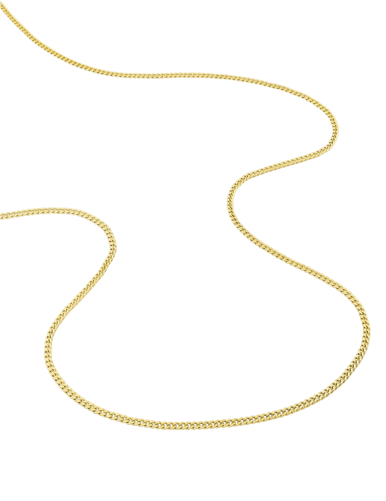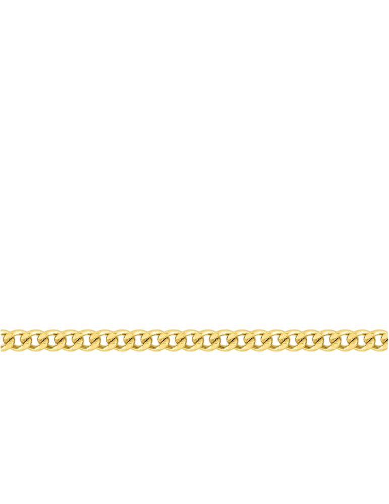 Cette chaîne en maille gourmette diamantée pour adulte et enfant en or jaune 750‰ (18 carats) au style simple et intemporel peut être porté par un homme ou une femme, seul ou avec un pendentif.