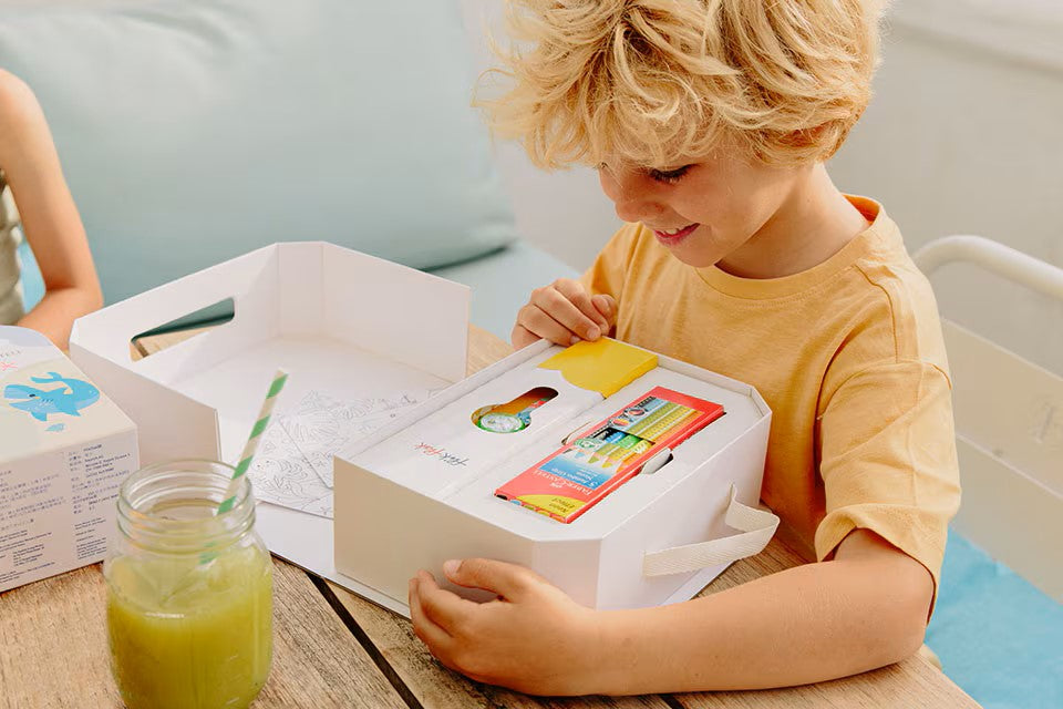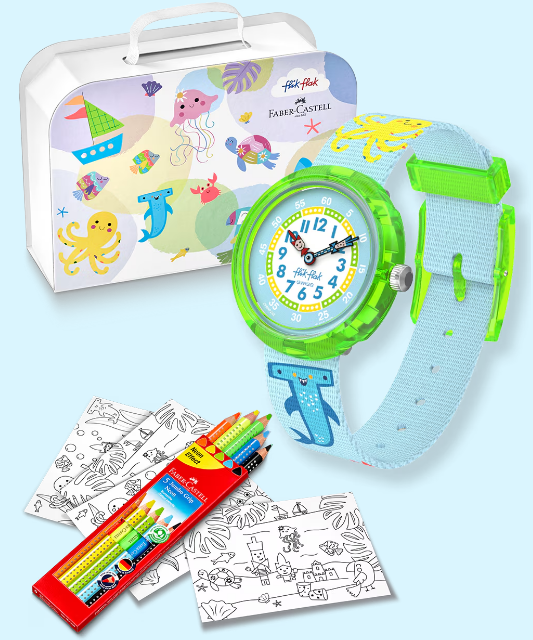 L’ensemble de montre pour enfant COLOR IN NEON comprend une montre colorée pour enfant, un lot assorti de crayons de couleur Jumbo Grip Neon et 4 cartes postales, le tout emballé dans un coffret spécial. C’est le cadeau idéal pour les enfants !