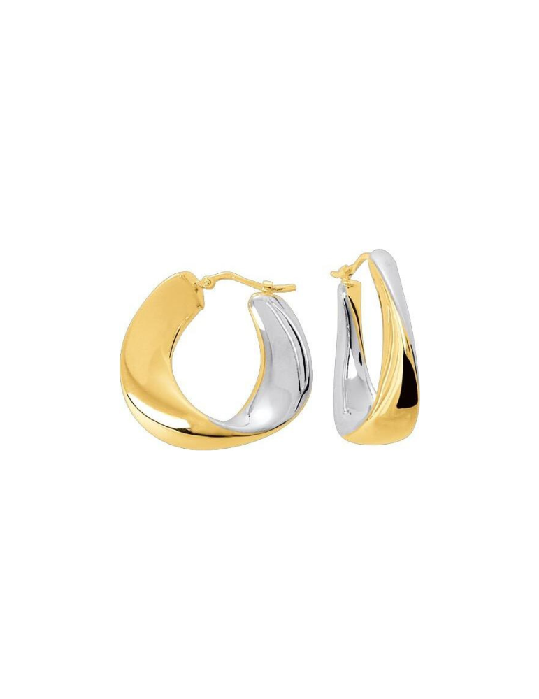 Cette paire de créoles, un classique intemporel de la bijouterie, a été revisitée pour un style actuel. Elles sont réalisées en or 18 carats (750‰) bicolore, associant l'élégance de l'or blanc au chaleureux éclat de l'or jaune pour un contraste raffiné. De forme ovale, ces créoles présentent une finition lisse et polie.
