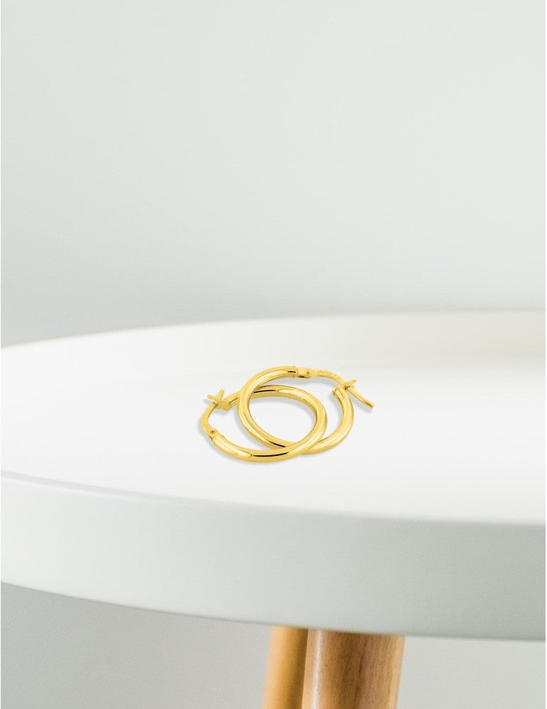Elégantes et séduisantes ces créoles lisses en or jaune 375‰ (9 carats) sont des accessoires de mode féminins incontournables. Le diamètre est de 15 mm avec un fil rond de 2 mm.